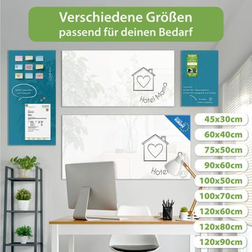 Auf der glatten Glasoberfläche lassen sich Termine, Rezepte oder Notizen ganz einfach mit Kreidestiften festhalten und rückstandslos entfernen. Starke Neodym-Magnete halten Ihre wichtigsten Erinnerungen sicher an Ort und Stelle. So entsteht Ihre ganz persönliche Ideenwand - jeden Tag neu.