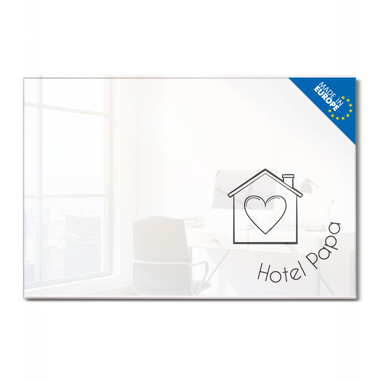 Glas Magnettafel im Querformat Motiv Hotel Papa Haus mit Herz 2