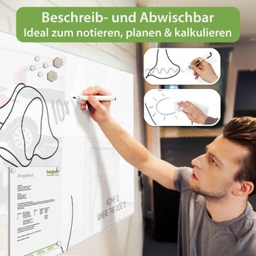 Auf der glatten Glasoberfläche lassen sich Termine, Rezepte oder Notizen ganz einfach mit Kreidestiften festhalten und rückstandslos entfernen. Starke Neodym-Magnete halten Ihre wichtigsten Erinnerungen sicher an Ort und Stelle. So entsteht Ihre ganz persönliche Ideenwand - jeden Tag neu.