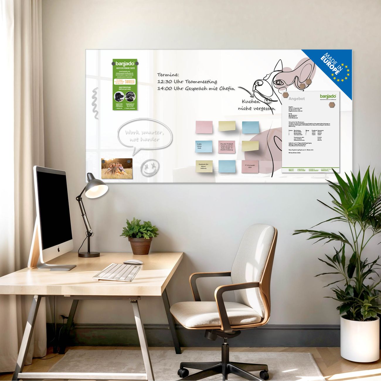 Jede Glas Magnettafel wird in unserer Werkstatt von Hand gefertigt und sorgfältig geprüft. So erhalten Sie ein echtes Qualitätsprodukt, das Funktion und Ästhetik perfekt vereint.?? Warum banjado?
