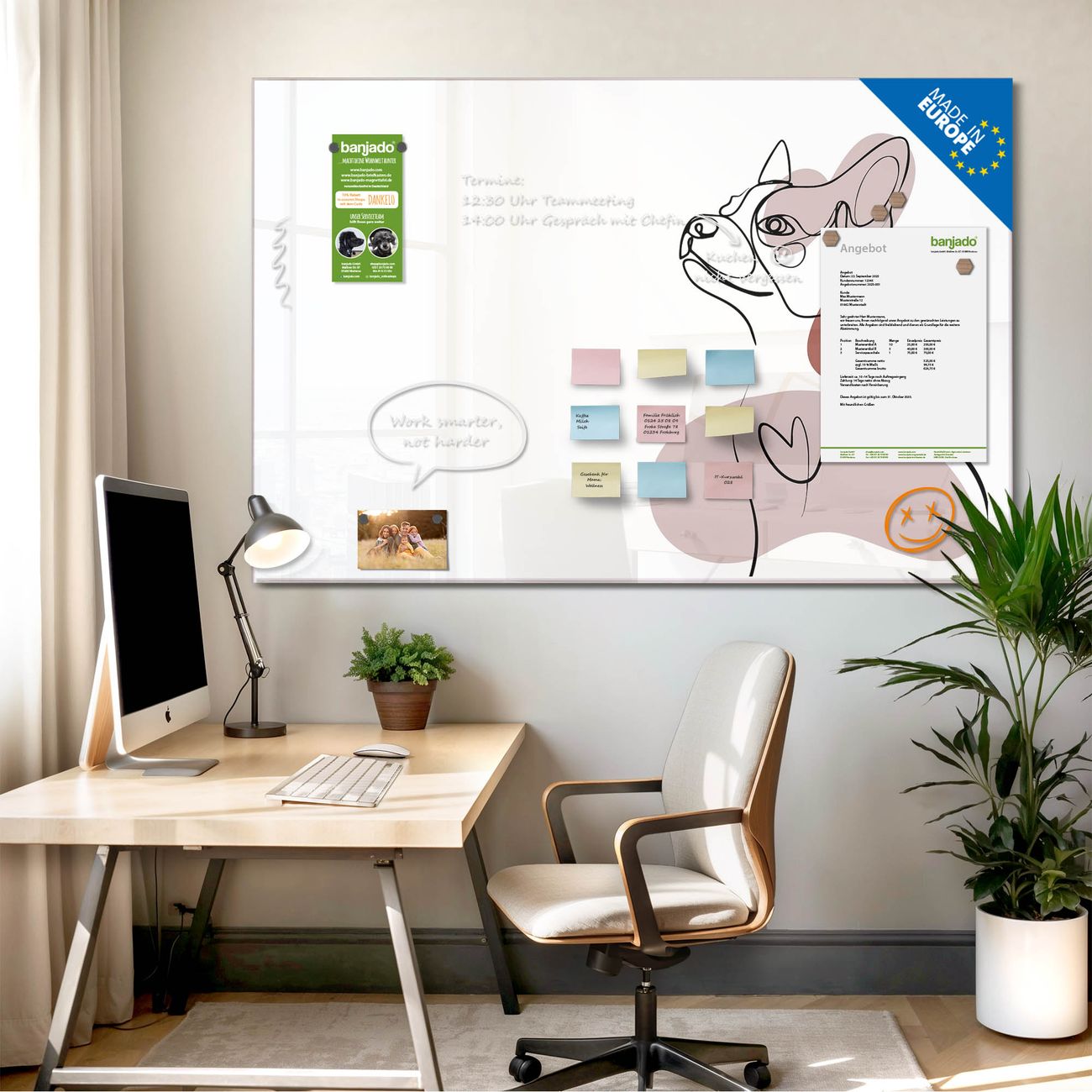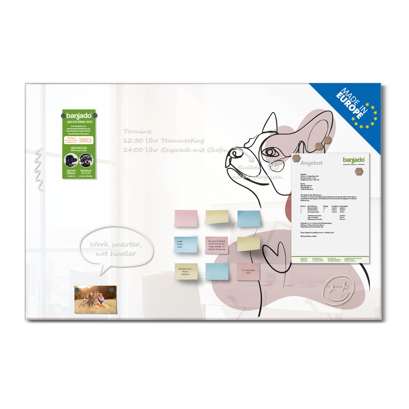 Die banjado Glas Magnettafel mit dem Motiv Motiv Hundeporträt verbindet Funktionalität mit Stil. Sie ersetzt das Zettelchaos durch klare Strukturen und bringt dabei eine warme, natürliche Atmosphäre in Ihr Zuhause. Ob im Büro, in der Küche oder im Eingangsbereich - dieses Design-Board zieht Blicke an und sorgt für Ordnung mit Charakter.