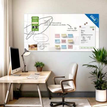 Auf der glatten Glasoberfläche lassen sich Termine, Rezepte oder Notizen ganz einfach mit Kreidestiften festhalten und rückstandslos entfernen. Starke Neodym-Magnete halten Ihre wichtigsten Erinnerungen sicher an Ort und Stelle. So entsteht Ihre ganz persönliche Ideenwand - jeden Tag neu.