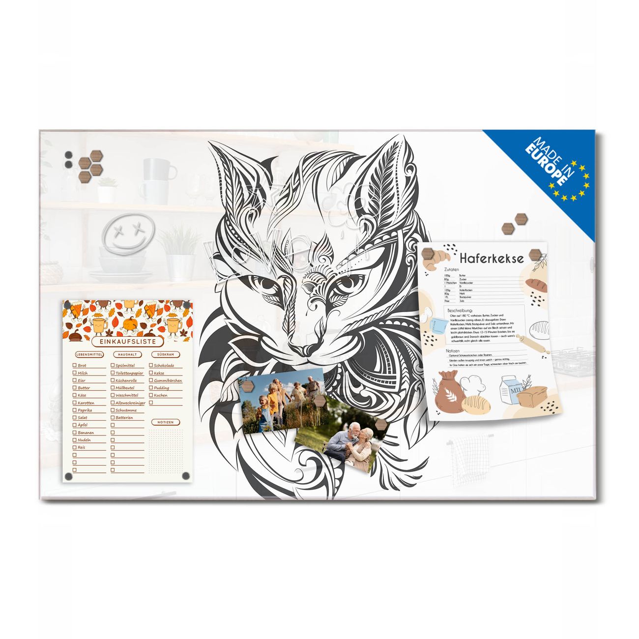 Ein Stück Design, das Ihren Alltag organisiert. Schreiben, heften, inspirieren - alles an einem Ort. Qualität, die man spürt. Montage leicht gemacht. Handwerk mit Herz - veredelt in Sachsen. Einzigartiges Design mit Motiv Motiv Katze 2 Beschreibbare Glasoberfläche, leicht zu reinigen Starke Magnetkraft durch Stahlrückwand Inklusive 4 Neodym-Magneten Flexible Montageoptionen Handveredelt in Sachsen - Qualität, die bleibt