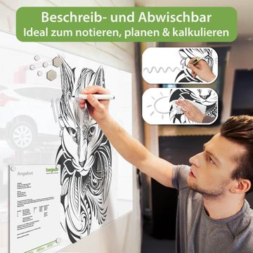 Gefertigt aus gehärtetem Sicherheitsglas mit einer magnetischen Rückwand aus Stahl überzeugt diese Magnettafel durch Stabilität und Langlebigkeit. Die Oberfläche bleibt dauerhaft brillant und pflegeleicht, selbst bei täglicher Nutzung.