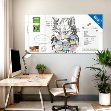 Die banjado Glas Magnettafel mit dem Motiv Motiv Katze 2 verbindet Funktionalität mit Stil. Sie ersetzt das Zettelchaos durch klare Strukturen und bringt dabei eine warme, natürliche Atmosphäre in Ihr Zuhause. Ob im Büro, in der Küche oder im Eingangsbereich - dieses Design-Board zieht Blicke an und sorgt für Ordnung mit Charakter.