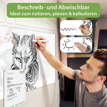 Auf der glatten Glasoberfläche lassen sich Termine, Rezepte oder Notizen ganz einfach mit Kreidestiften festhalten und rückstandslos entfernen. Starke Neodym-Magnete halten Ihre wichtigsten Erinnerungen sicher an Ort und Stelle. So entsteht Ihre ganz persönliche Ideenwand - jeden Tag neu.