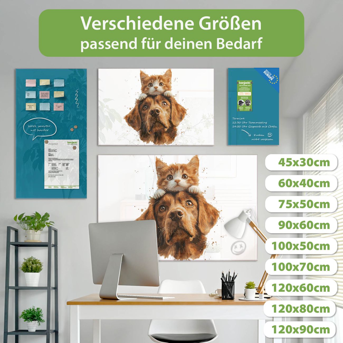 Jede Glas Magnettafel wird in unserer Werkstatt von Hand gefertigt und sorgfältig geprüft. So erhalten Sie ein echtes Qualitätsprodukt, das Funktion und Ästhetik perfekt vereint.?? Warum banjado?