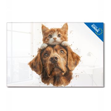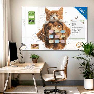 Glas Magnettafel im Querformat Motiv Katzen- und Hundefreunde