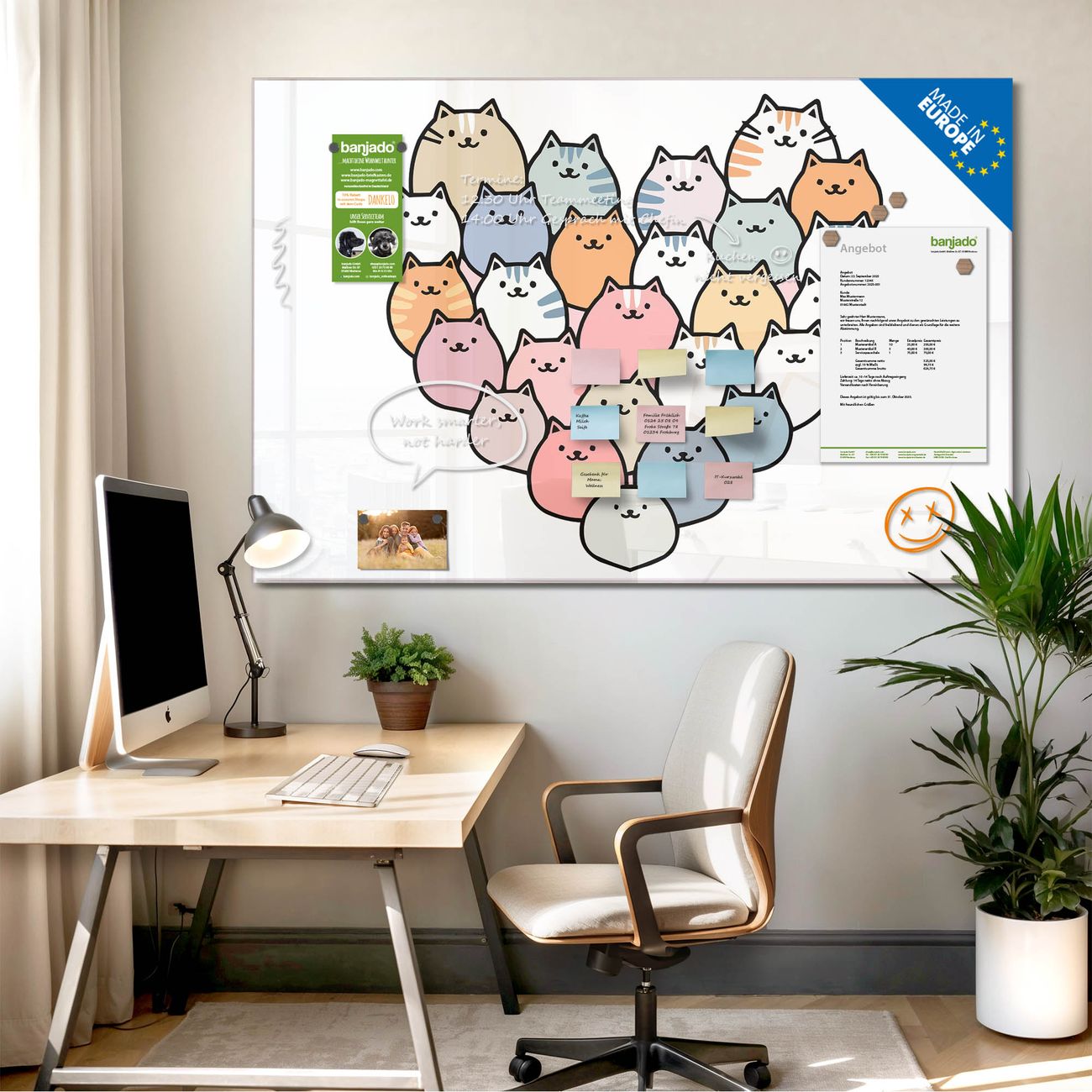 Die banjado Glas Magnettafel mit dem Motiv Motiv Katzenherz verbindet Funktionalität mit Stil. Sie ersetzt das Zettelchaos durch klare Strukturen und bringt dabei eine warme, natürliche Atmosphäre in Ihr Zuhause. Ob im Büro, in der Küche oder im Eingangsbereich - dieses Design-Board zieht Blicke an und sorgt für Ordnung mit Charakter.