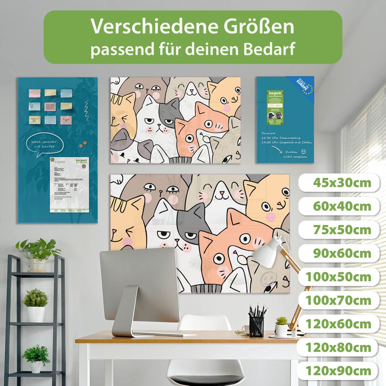 Jede Glas Magnettafel wird in unserer Werkstatt von Hand gefertigt und sorgfältig geprüft. So erhalten Sie ein echtes Qualitätsprodukt, das Funktion und Ästhetik perfekt vereint.?? Warum banjado?
