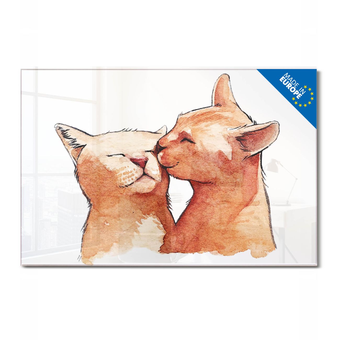 Glas Magnettafel im Querformat Motiv Katzenkuss
