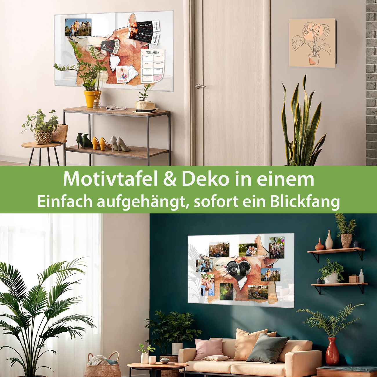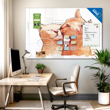 Die banjado Glas Magnettafel mit dem Motiv Motiv Katzenkuss verbindet Funktionalität mit Stil. Sie ersetzt das Zettelchaos durch klare Strukturen und bringt dabei eine warme, natürliche Atmosphäre in Ihr Zuhause. Ob im Büro, in der Küche oder im Eingangsbereich - dieses Design-Board zieht Blicke an und sorgt für Ordnung mit Charakter.