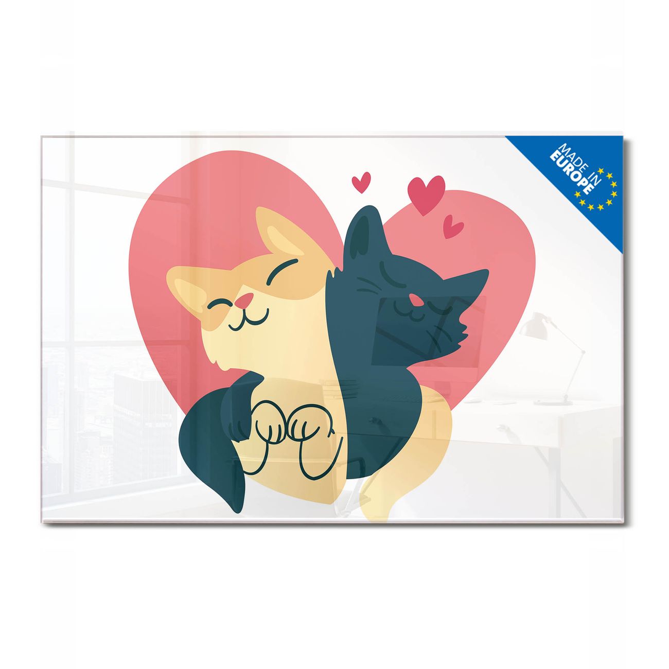Glas Magnettafel im Querformat Motiv Katzenliebe