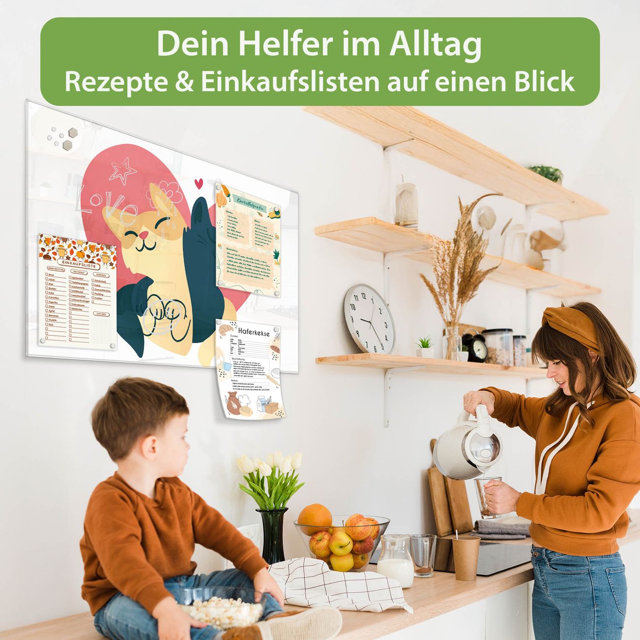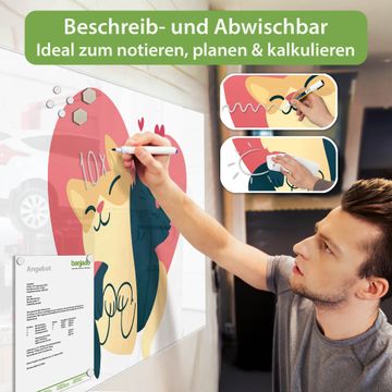 Die banjado Glas Magnettafel mit dem Motiv Motiv Katzenliebe verbindet Funktionalität mit Stil. Sie ersetzt das Zettelchaos durch klare Strukturen und bringt dabei eine warme, natürliche Atmosphäre in Ihr Zuhause. Ob im Büro, in der Küche oder im Eingangsbereich - dieses Design-Board zieht Blicke an und sorgt für Ordnung mit Charakter.