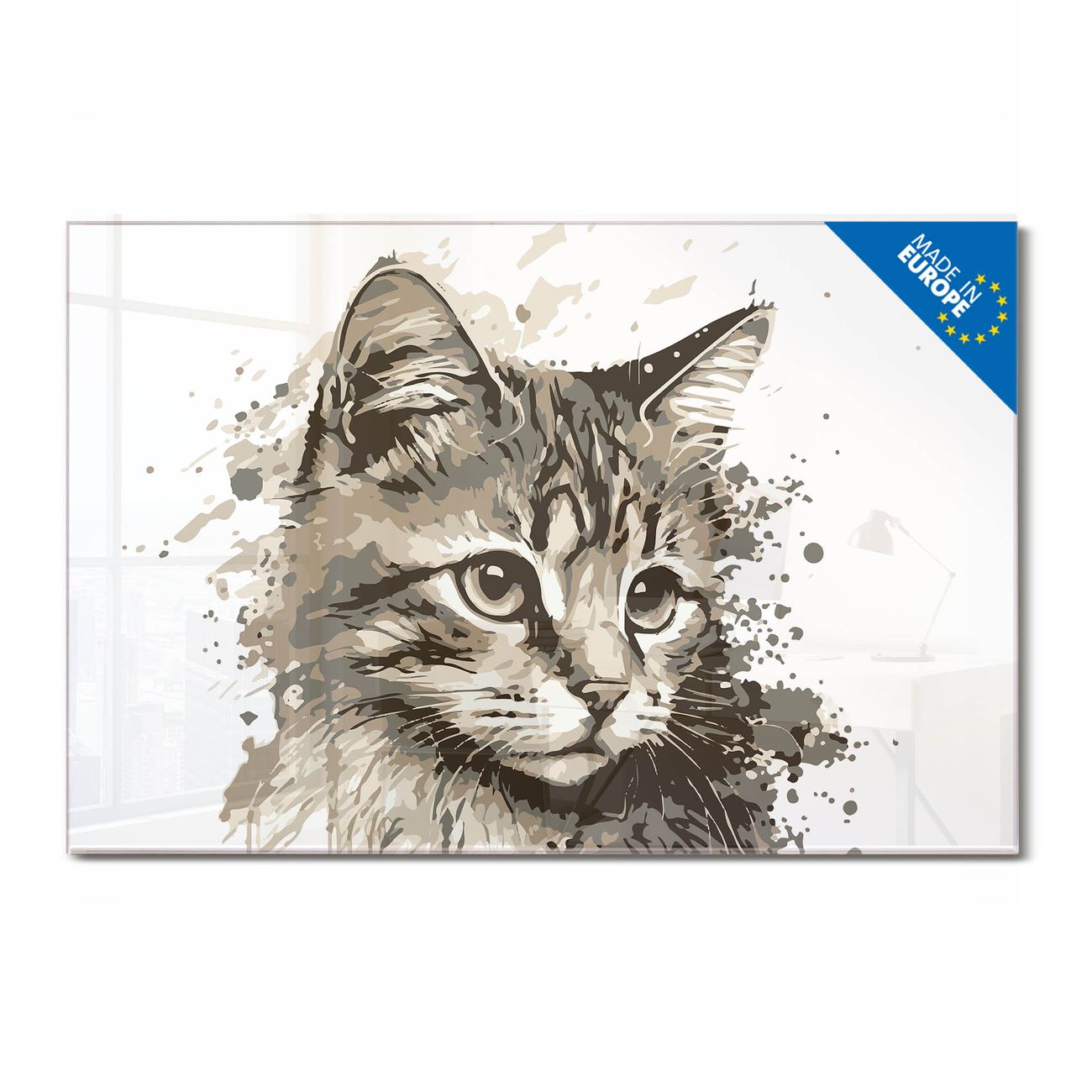 Glas Magnettafel im Querformat Motiv Katzenportrait in Aquarell 2
