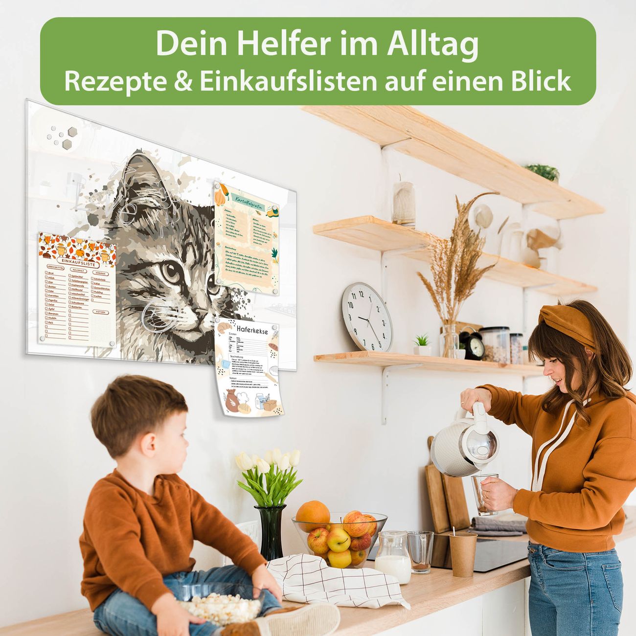 Ein Stück Design, das Ihren Alltag organisiert. Schreiben, heften, inspirieren - alles an einem Ort. Qualität, die man spürt. Montage leicht gemacht. Handwerk mit Herz - veredelt in Sachsen. Einzigartiges Design mit Motiv Motiv Katzenportrait in Aquarell 2 Beschreibbare Glasoberfläche, leicht zu reinigen Starke Magnetkraft durch Stahlrückwand Inklusive 4 Neodym-Magneten Flexible Montageoptionen Handveredelt in Sachsen - Qualität, die bleibt