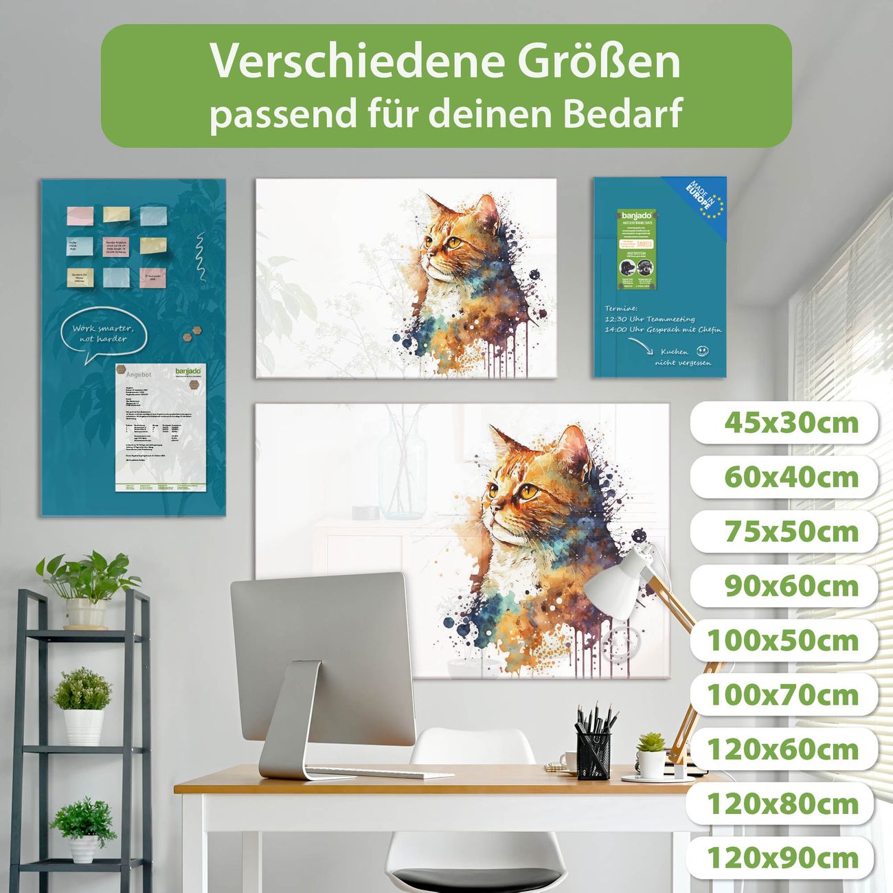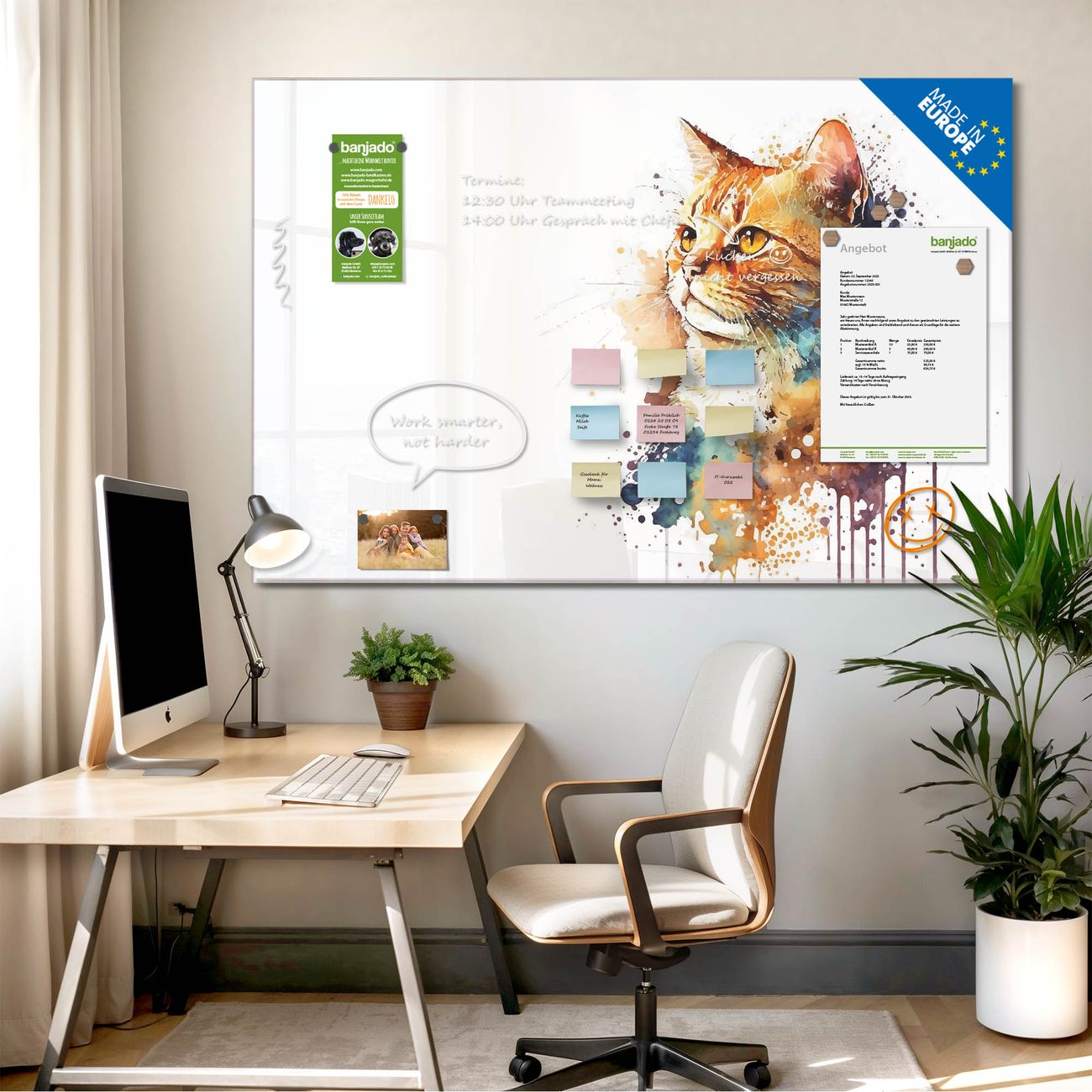 Jede Glas Magnettafel wird in unserer Werkstatt von Hand gefertigt und sorgfältig geprüft. So erhalten Sie ein echtes Qualitätsprodukt, das Funktion und Ästhetik perfekt vereint.?? Warum banjado?