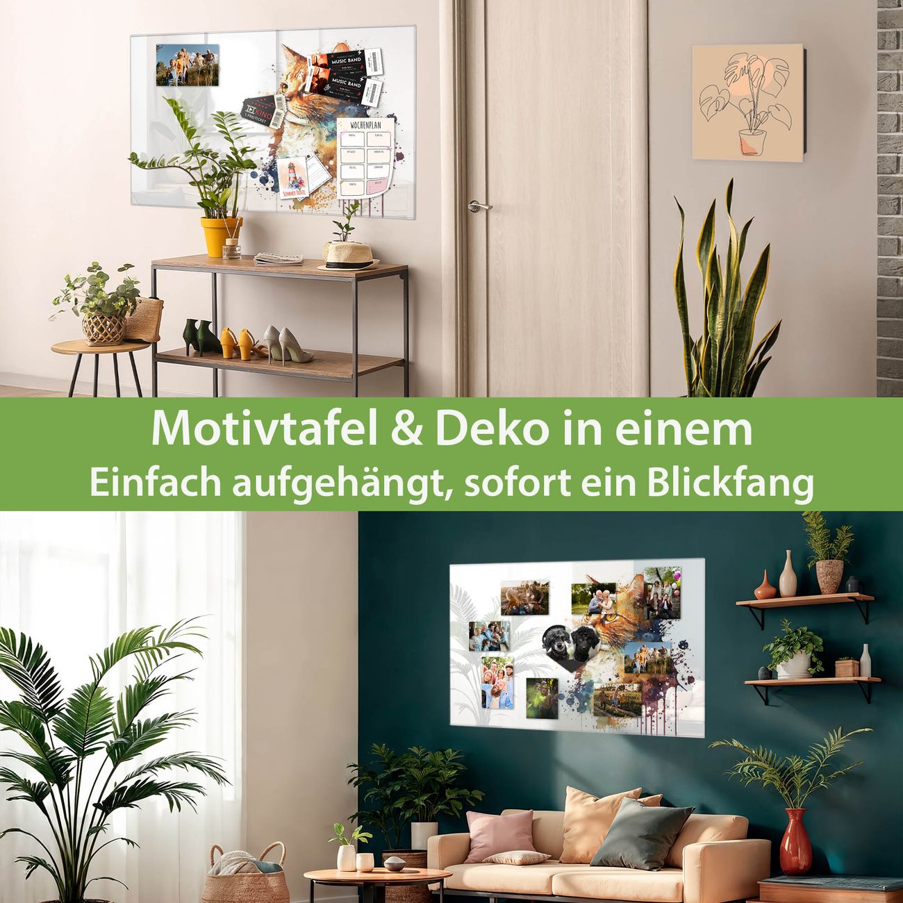 Dank der flachen Bauweise wirkt die Magnetwand fast schwebend an der Wand. Sie können sie mit Montagekleber elegant befestigen oder mit einem passenden Set klassisch verschrauben - beides sorgt für sicheren Halt und eine dezente Optik.