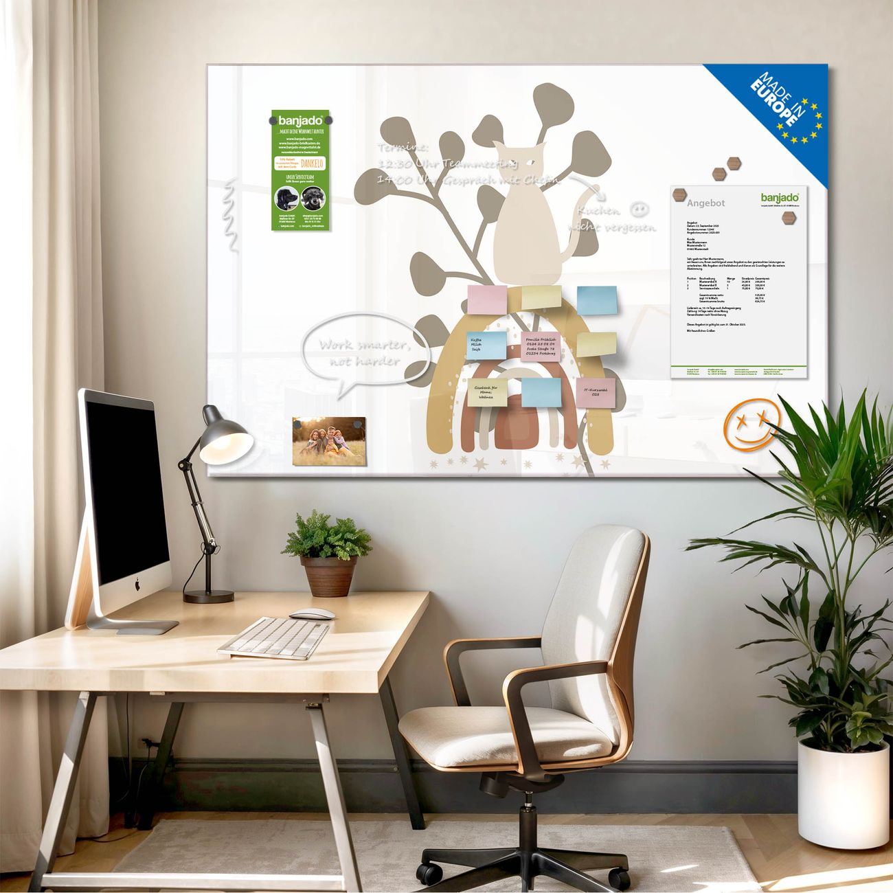 Die banjado Glas Magnettafel mit dem Motiv Motiv Katzenregenbogen verbindet Funktionalität mit Stil. Sie ersetzt das Zettelchaos durch klare Strukturen und bringt dabei eine warme, natürliche Atmosphäre in Ihr Zuhause. Ob im Büro, in der Küche oder im Eingangsbereich - dieses Design-Board zieht Blicke an und sorgt für Ordnung mit Charakter.