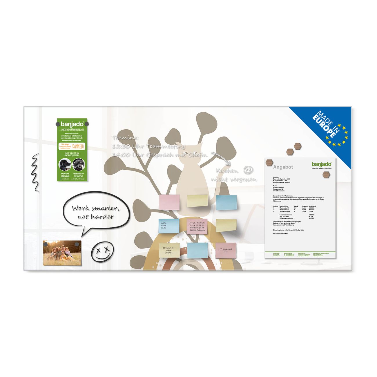 Jede Glas Magnettafel wird in unserer Werkstatt von Hand gefertigt und sorgfältig geprüft. So erhalten Sie ein echtes Qualitätsprodukt, das Funktion und Ästhetik perfekt vereint.?? Warum banjado?