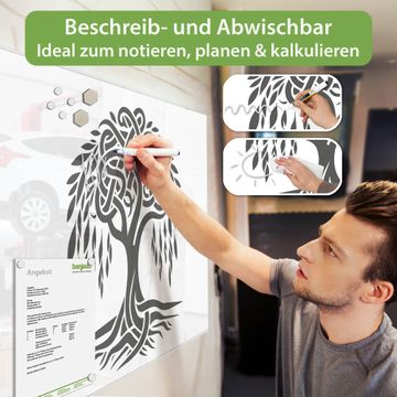 Die banjado Glas Magnettafel mit dem Motiv Motiv Keltischer Baum des Lebens verbindet Funktionalität mit Stil. Sie ersetzt das Zettelchaos durch klare Strukturen und bringt dabei eine warme, natürliche Atmosphäre in Ihr Zuhause. Ob im Büro, in der Küche oder im Eingangsbereich - dieses Design-Board zieht Blicke an und sorgt für Ordnung mit Charakter.