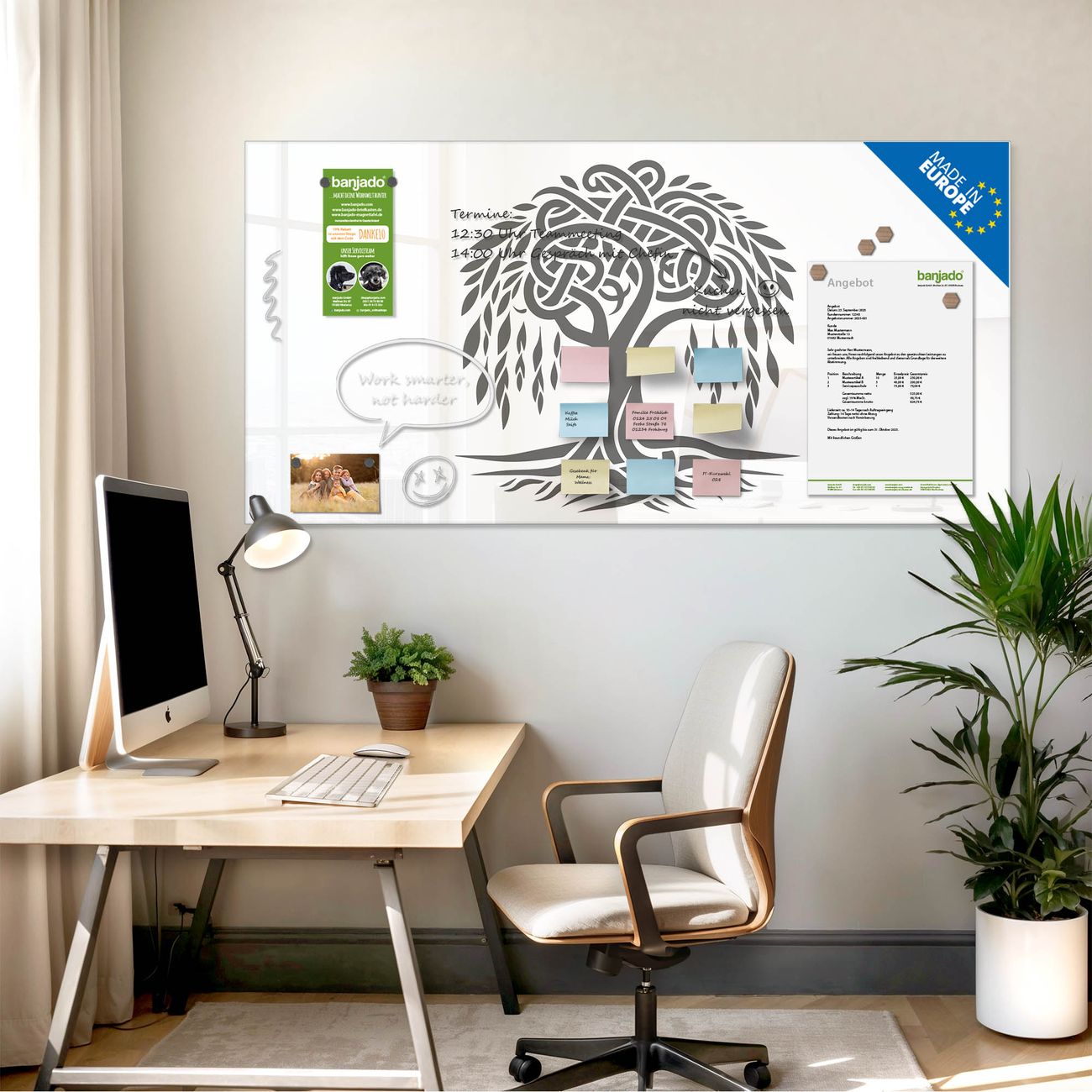 Die banjado Glas Magnettafel mit dem Motiv Motiv Keltischer Baum des Lebens verbindet Funktionalität mit Stil. Sie ersetzt das Zettelchaos durch klare Strukturen und bringt dabei eine warme, natürliche Atmosphäre in Ihr Zuhause. Ob im Büro, in der Küche oder im Eingangsbereich - dieses Design-Board zieht Blicke an und sorgt für Ordnung mit Charakter.