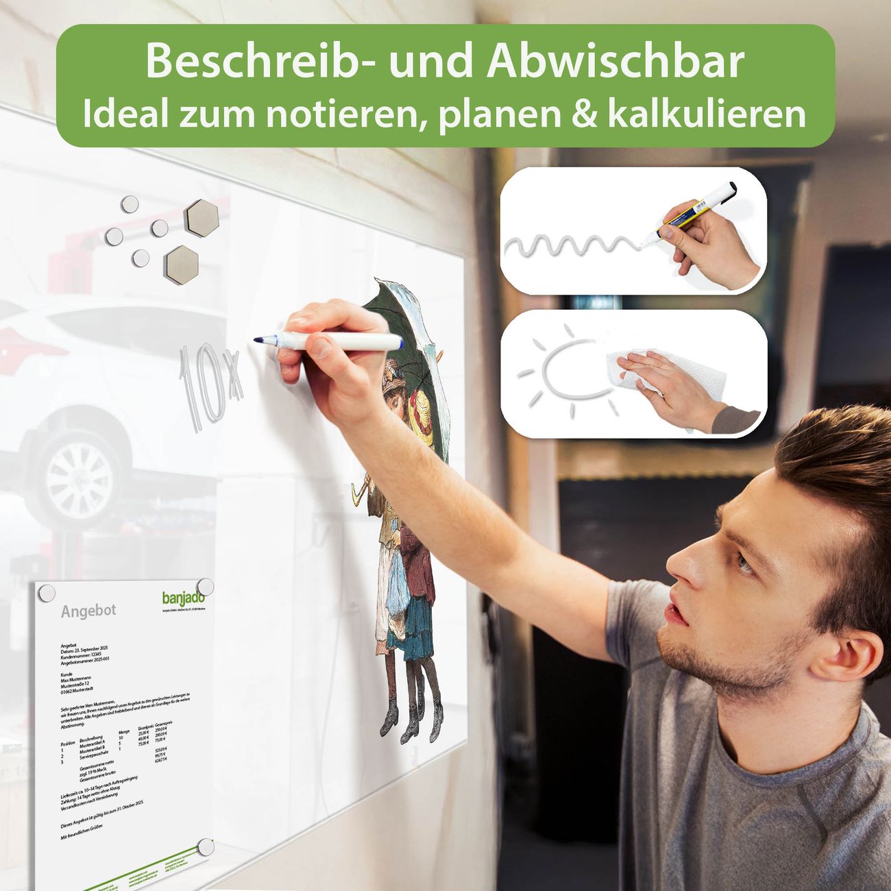Jede Glas Magnettafel wird in unserer Werkstatt von Hand gefertigt und sorgfältig geprüft. So erhalten Sie ein echtes Qualitätsprodukt, das Funktion und Ästhetik perfekt vereint.?? Warum banjado?