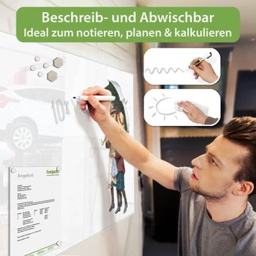 Gefertigt aus gehärtetem Sicherheitsglas mit einer magnetischen Rückwand aus Stahl überzeugt diese Magnettafel durch Stabilität und Langlebigkeit. Die Oberfläche bleibt dauerhaft brillant und pflegeleicht, selbst bei täglicher Nutzung.