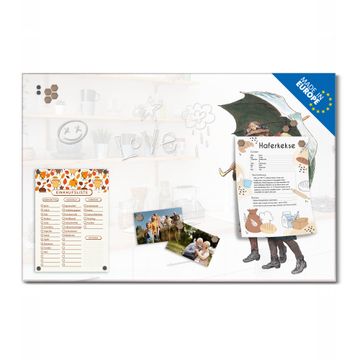Auf der glatten Glasoberfläche lassen sich Termine, Rezepte oder Notizen ganz einfach mit Kreidestiften festhalten und rückstandslos entfernen. Starke Neodym-Magnete halten Ihre wichtigsten Erinnerungen sicher an Ort und Stelle. So entsteht Ihre ganz persönliche Ideenwand - jeden Tag neu.