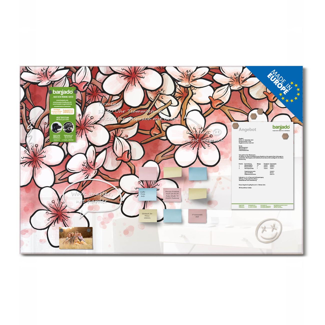 Glas Magnettafel im Querformat Motiv Kirschblütentraum