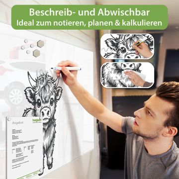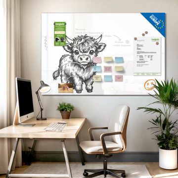 Die banjado Glas Magnettafel mit dem Motiv Motiv Kleines Hochlandrind verbindet Funktionalität mit Stil. Sie ersetzt das Zettelchaos durch klare Strukturen und bringt dabei eine warme, natürliche Atmosphäre in Ihr Zuhause. Ob im Büro, in der Küche oder im Eingangsbereich - dieses Design-Board zieht Blicke an und sorgt für Ordnung mit Charakter.