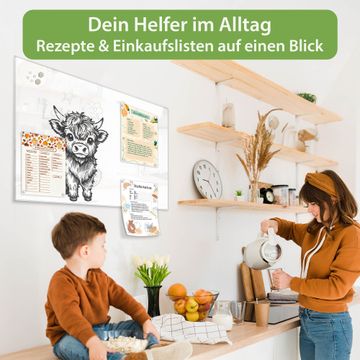 Auf der glatten Glasoberfläche lassen sich Termine, Rezepte oder Notizen ganz einfach mit Kreidestiften festhalten und rückstandslos entfernen. Starke Neodym-Magnete halten Ihre wichtigsten Erinnerungen sicher an Ort und Stelle. So entsteht Ihre ganz persönliche Ideenwand - jeden Tag neu.