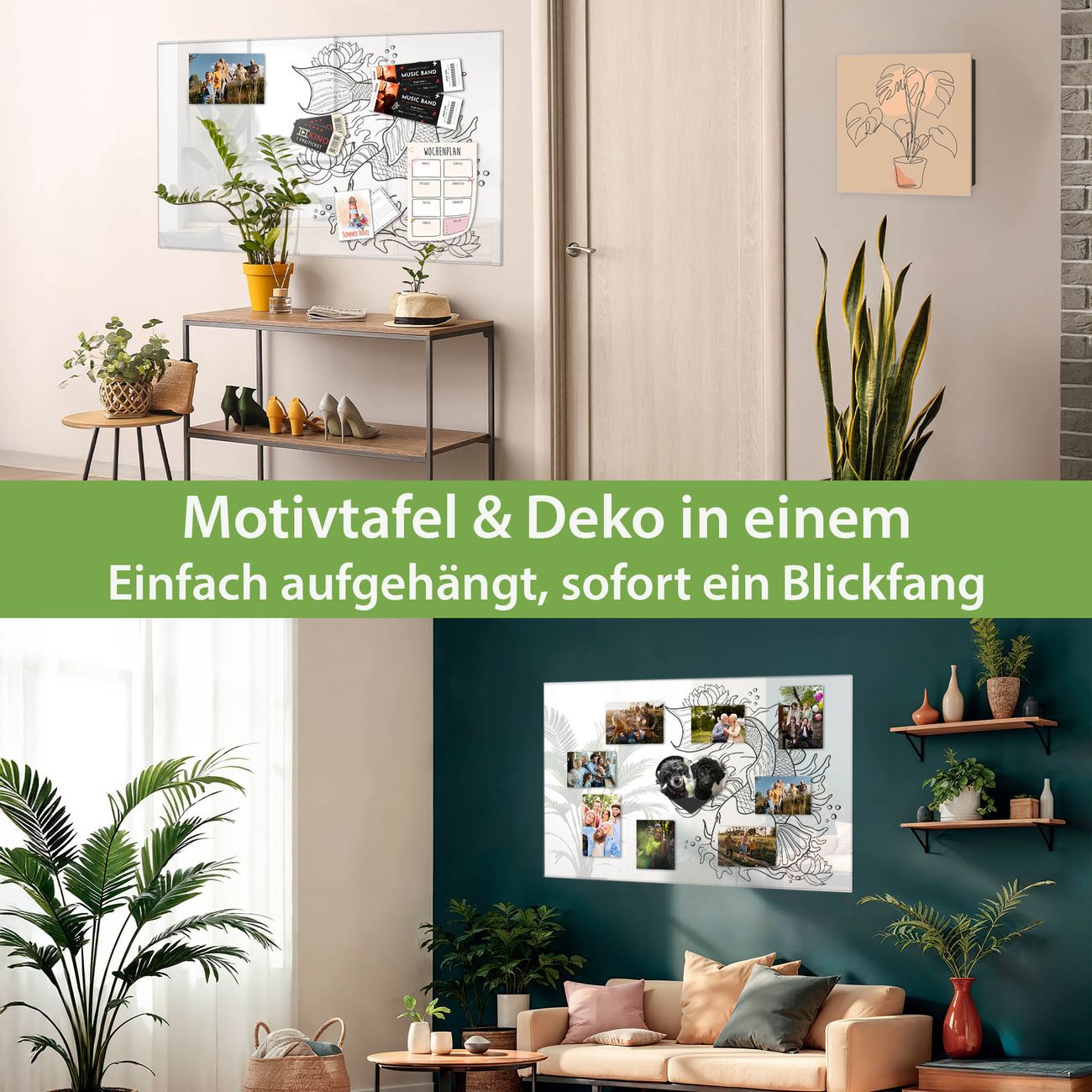 Die banjado Glas Magnettafel mit dem Motiv Motiv Koi 2 verbindet Funktionalität mit Stil. Sie ersetzt das Zettelchaos durch klare Strukturen und bringt dabei eine warme, natürliche Atmosphäre in Ihr Zuhause. Ob im Büro, in der Küche oder im Eingangsbereich - dieses Design-Board zieht Blicke an und sorgt für Ordnung mit Charakter.