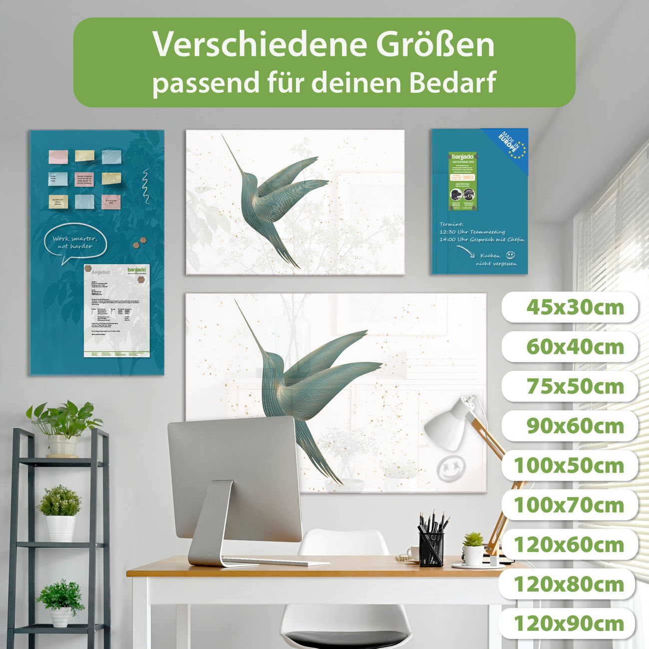 Jede Glas Magnettafel wird in unserer Werkstatt von Hand gefertigt und sorgfältig geprüft. So erhalten Sie ein echtes Qualitätsprodukt, das Funktion und Ästhetik perfekt vereint.?? Warum banjado?