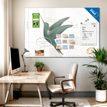 Die banjado Glas Magnettafel mit dem Motiv Motiv Kolibri 6 verbindet Funktionalität mit Stil. Sie ersetzt das Zettelchaos durch klare Strukturen und bringt dabei eine warme, natürliche Atmosphäre in Ihr Zuhause. Ob im Büro, in der Küche oder im Eingangsbereich - dieses Design-Board zieht Blicke an und sorgt für Ordnung mit Charakter.