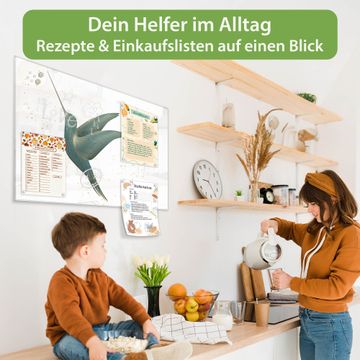 Auf der glatten Glasoberfläche lassen sich Termine, Rezepte oder Notizen ganz einfach mit Kreidestiften festhalten und rückstandslos entfernen. Starke Neodym-Magnete halten Ihre wichtigsten Erinnerungen sicher an Ort und Stelle. So entsteht Ihre ganz persönliche Ideenwand - jeden Tag neu.