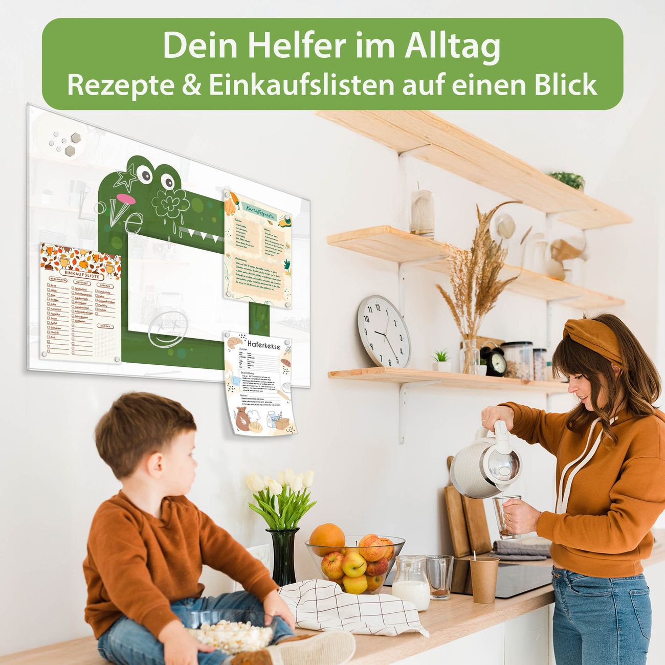 Auf der glatten Glasoberfläche lassen sich Termine, Rezepte oder Notizen ganz einfach mit Kreidestiften festhalten und rückstandslos entfernen. Starke Neodym-Magnete halten Ihre wichtigsten Erinnerungen sicher an Ort und Stelle. So entsteht Ihre ganz persönliche Ideenwand - jeden Tag neu.