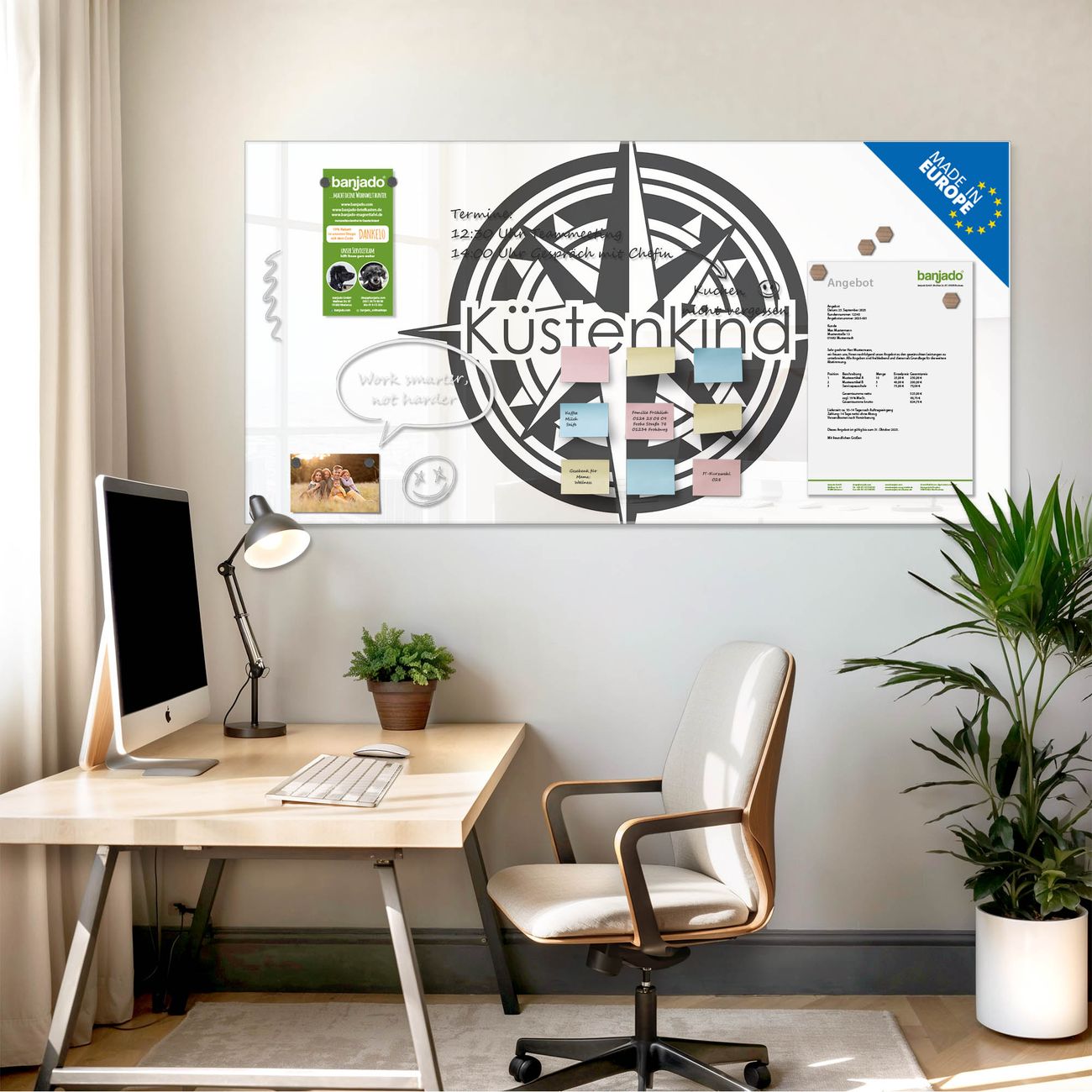 Jede Glas Magnettafel wird in unserer Werkstatt von Hand gefertigt und sorgfältig geprüft. So erhalten Sie ein echtes Qualitätsprodukt, das Funktion und Ästhetik perfekt vereint.?? Warum banjado?