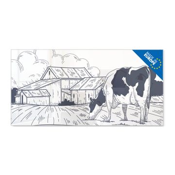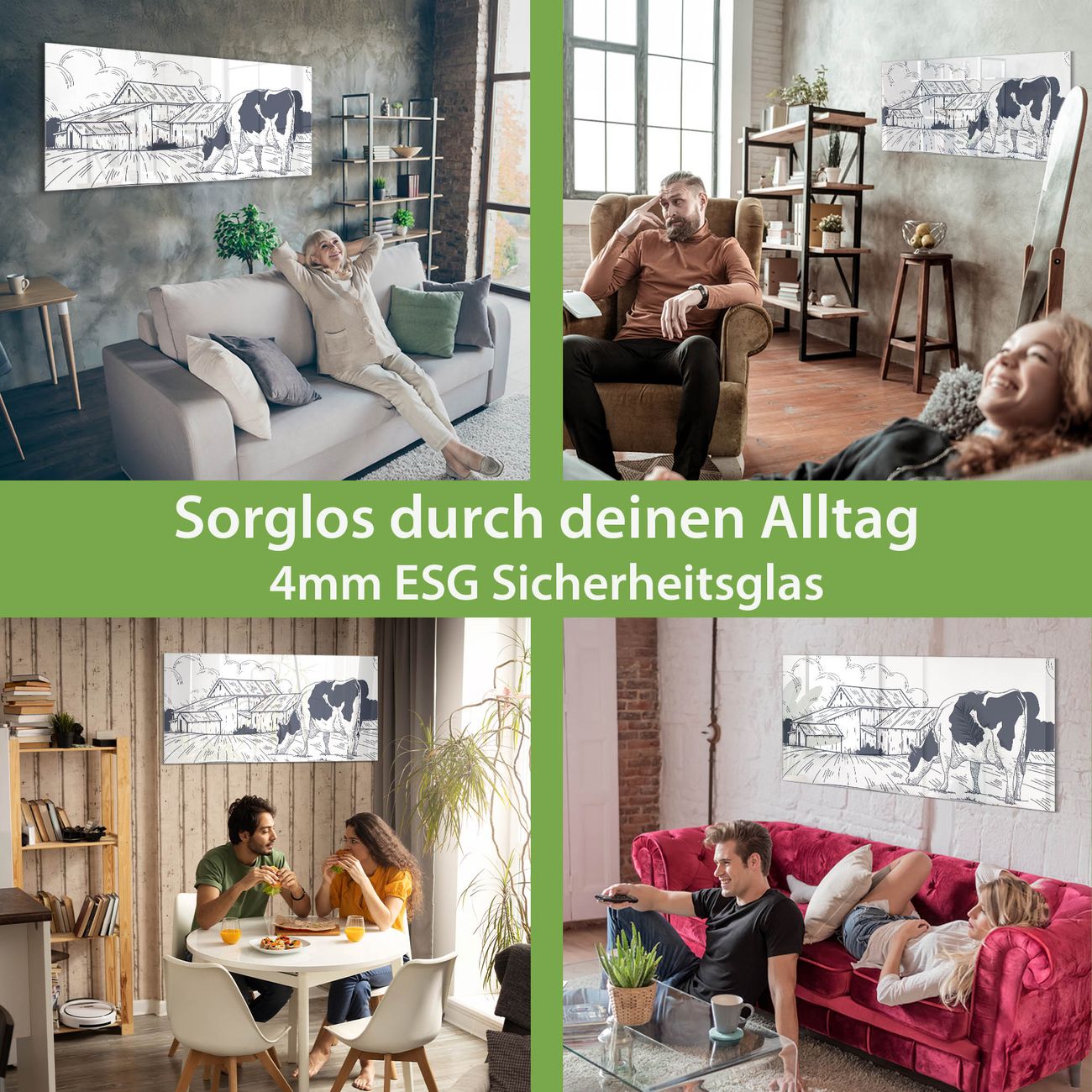 Glas Magnettafel im Querformat Motiv Ländliche Idylle mit Kuh