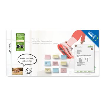 Auf der glatten Glasoberfläche lassen sich Termine, Rezepte oder Notizen ganz einfach mit Kreidestiften festhalten und rückstandslos entfernen. Starke Neodym-Magnete halten Ihre wichtigsten Erinnerungen sicher an Ort und Stelle. So entsteht Ihre ganz persönliche Ideenwand - jeden Tag neu.