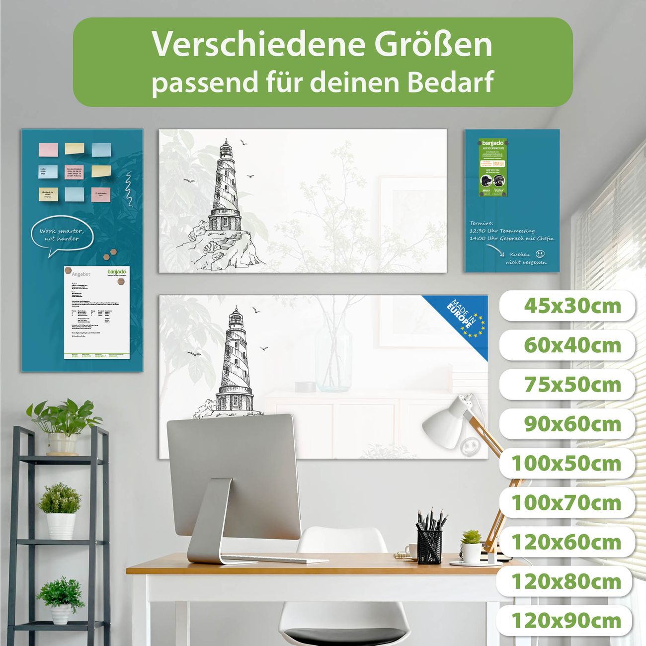 Jede Glas Magnettafel wird in unserer Werkstatt von Hand gefertigt und sorgfältig geprüft. So erhalten Sie ein echtes Qualitätsprodukt, das Funktion und Ästhetik perfekt vereint.?? Warum banjado?