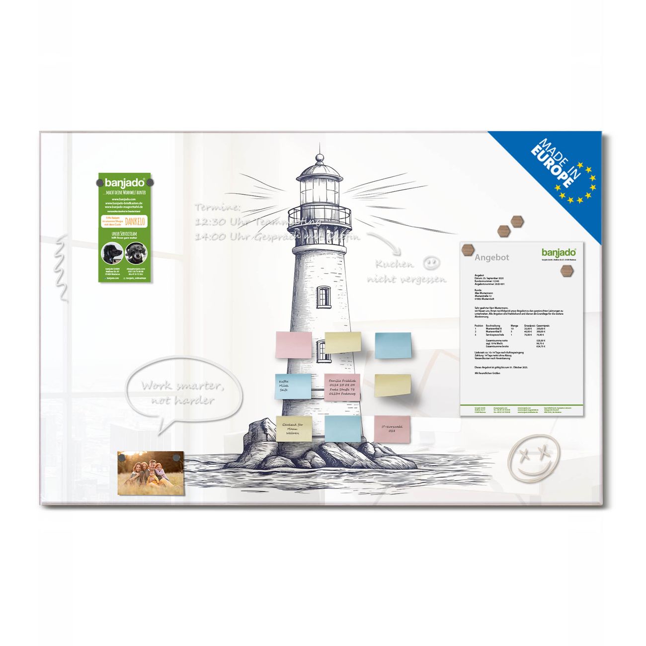 Glas Magnettafel im Querformat Motiv Leuchtturm-Skizze