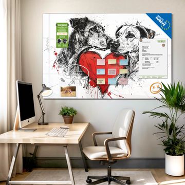 Glas Magnettafel im Querformat Motiv Liebende Hunde 2