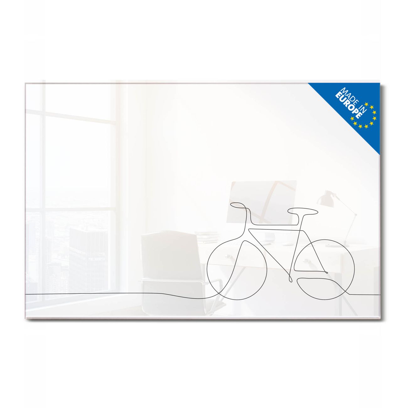 Glas Magnettafel im Querformat Motiv Lineart Fahrrad