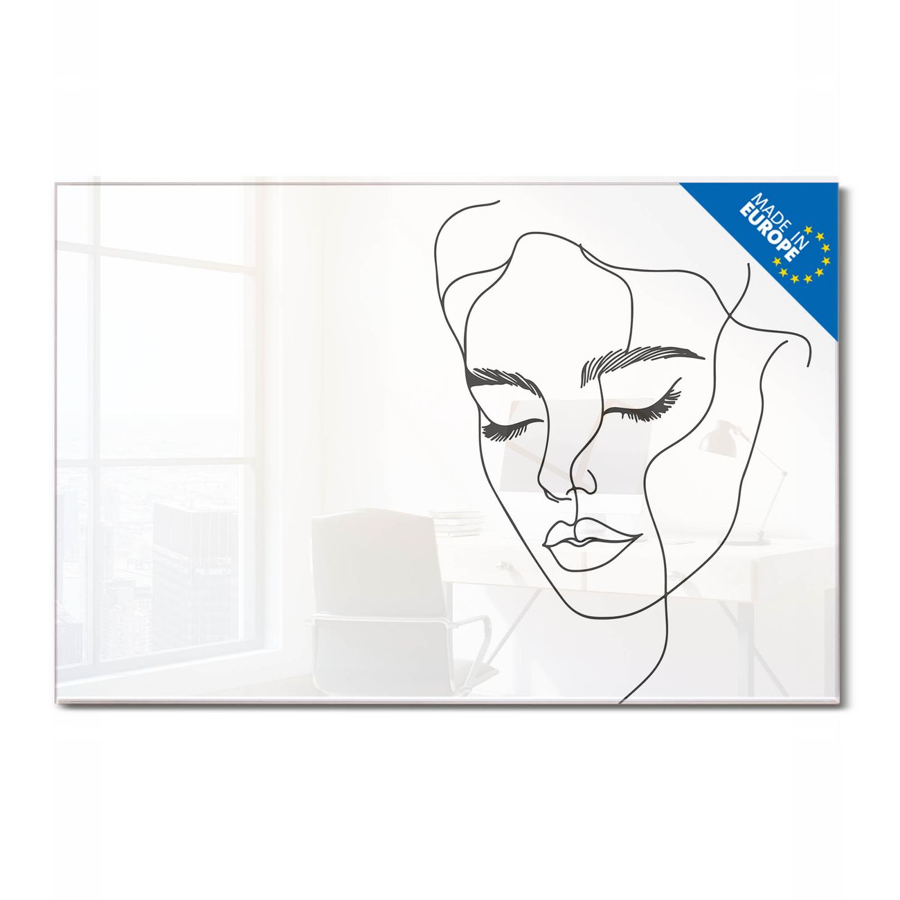 Glas Magnettafel im Querformat Motiv Linienkunst-Portrait