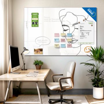Ein Stück Design, das Ihren Alltag organisiert. Schreiben, heften, inspirieren - alles an einem Ort. Qualität, die man spürt. Montage leicht gemacht. Handwerk mit Herz - veredelt in Sachsen. Einzigartiges Design mit Motiv Motiv Linienkunst-Portrait Beschreibbare Glasoberfläche, leicht zu reinigen Starke Magnetkraft durch Stahlrückwand Inklusive 4 Neodym-Magneten Flexible Montageoptionen Handveredelt in Sachsen - Qualität, die bleibt