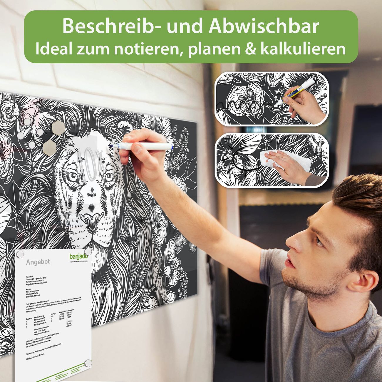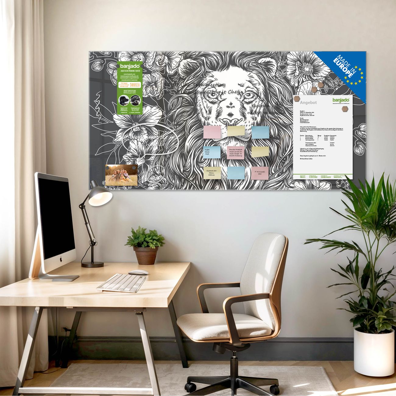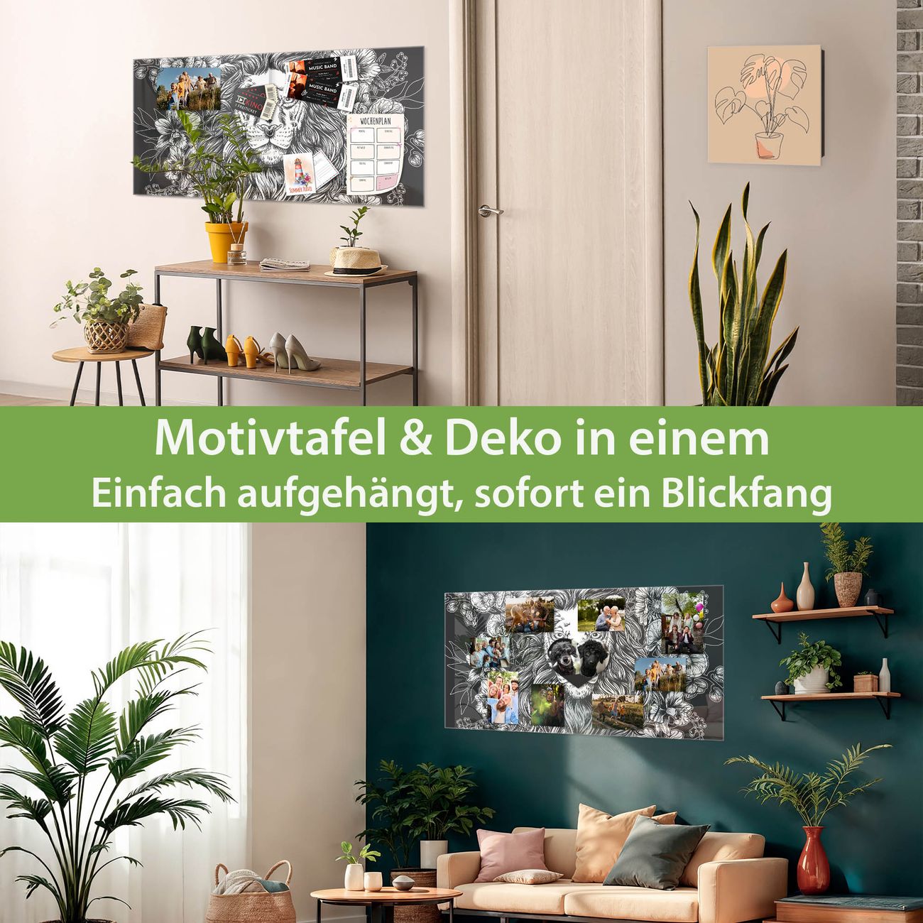 Die banjado Glas Magnettafel mit dem Motiv Motiv Löwenblütenpracht verbindet Funktionalität mit Stil. Sie ersetzt das Zettelchaos durch klare Strukturen und bringt dabei eine warme, natürliche Atmosphäre in Ihr Zuhause. Ob im Büro, in der Küche oder im Eingangsbereich - dieses Design-Board zieht Blicke an und sorgt für Ordnung mit Charakter.