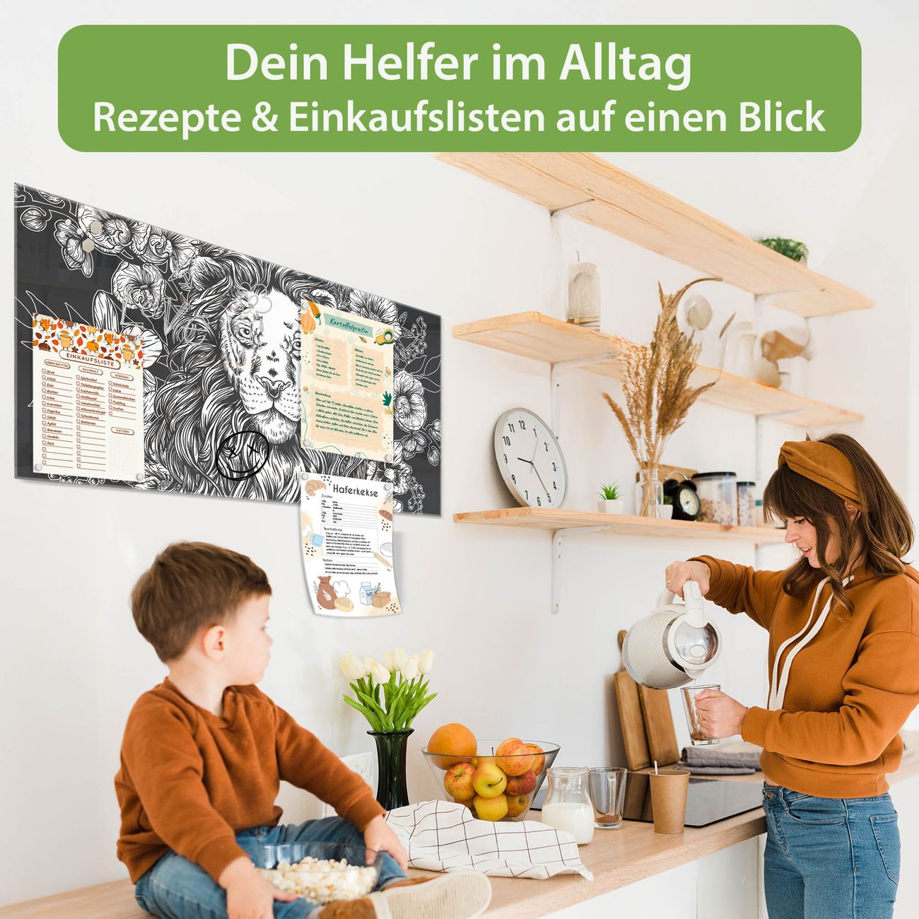 Ein Stück Design, das Ihren Alltag organisiert. Schreiben, heften, inspirieren - alles an einem Ort. Qualität, die man spürt. Montage leicht gemacht. Handwerk mit Herz - veredelt in Sachsen. Einzigartiges Design mit Motiv Motiv Löwenblütenpracht Beschreibbare Glasoberfläche, leicht zu reinigen Starke Magnetkraft durch Stahlrückwand Inklusive 4 Neodym-Magneten Flexible Montageoptionen Handveredelt in Sachsen - Qualität, die bleibt