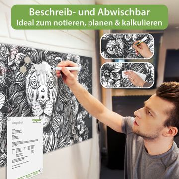 Auf der glatten Glasoberfläche lassen sich Termine, Rezepte oder Notizen ganz einfach mit Kreidestiften festhalten und rückstandslos entfernen. Starke Neodym-Magnete halten Ihre wichtigsten Erinnerungen sicher an Ort und Stelle. So entsteht Ihre ganz persönliche Ideenwand - jeden Tag neu.