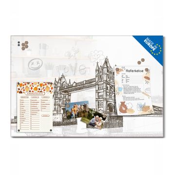 Ein Stück Design, das Ihren Alltag organisiert. Schreiben, heften, inspirieren - alles an einem Ort. Qualität, die man spürt. Montage leicht gemacht. Handwerk mit Herz - veredelt in Sachsen. Einzigartiges Design mit Motiv Motiv London Brücke Illustration Beschreibbare Glasoberfläche, leicht zu reinigen Starke Magnetkraft durch Stahlrückwand Inklusive 4 Neodym-Magneten Flexible Montageoptionen Handveredelt in Sachsen - Qualität, die bleibt